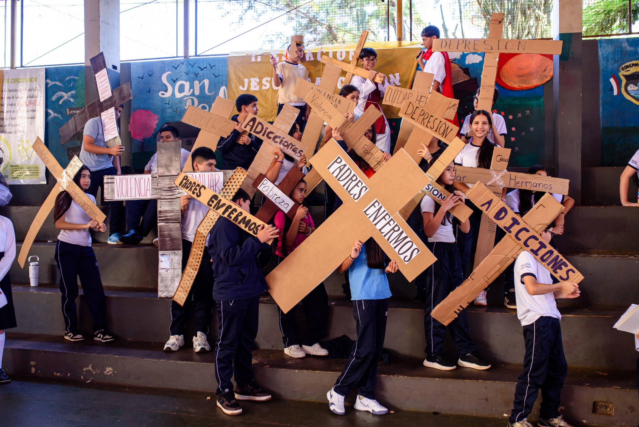 A través de estas actividades, buscamos que nuestros estudiantes no solo conozcan la fe, sino que la experimenten y la hagan vida. Caminar junto a Jesús en su cruz es también aprender a reconocer las cruces de los demás y comprometernos a acompañar, servir y construir una comunidad más humana y fraterna.